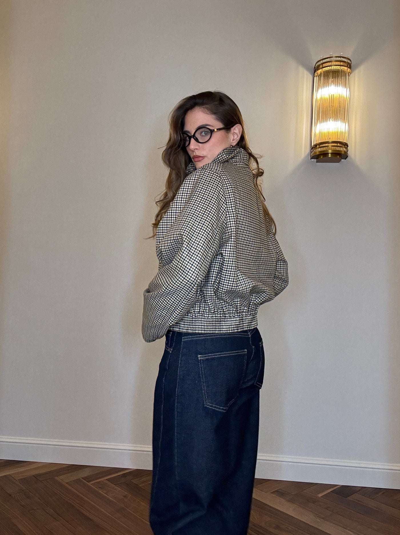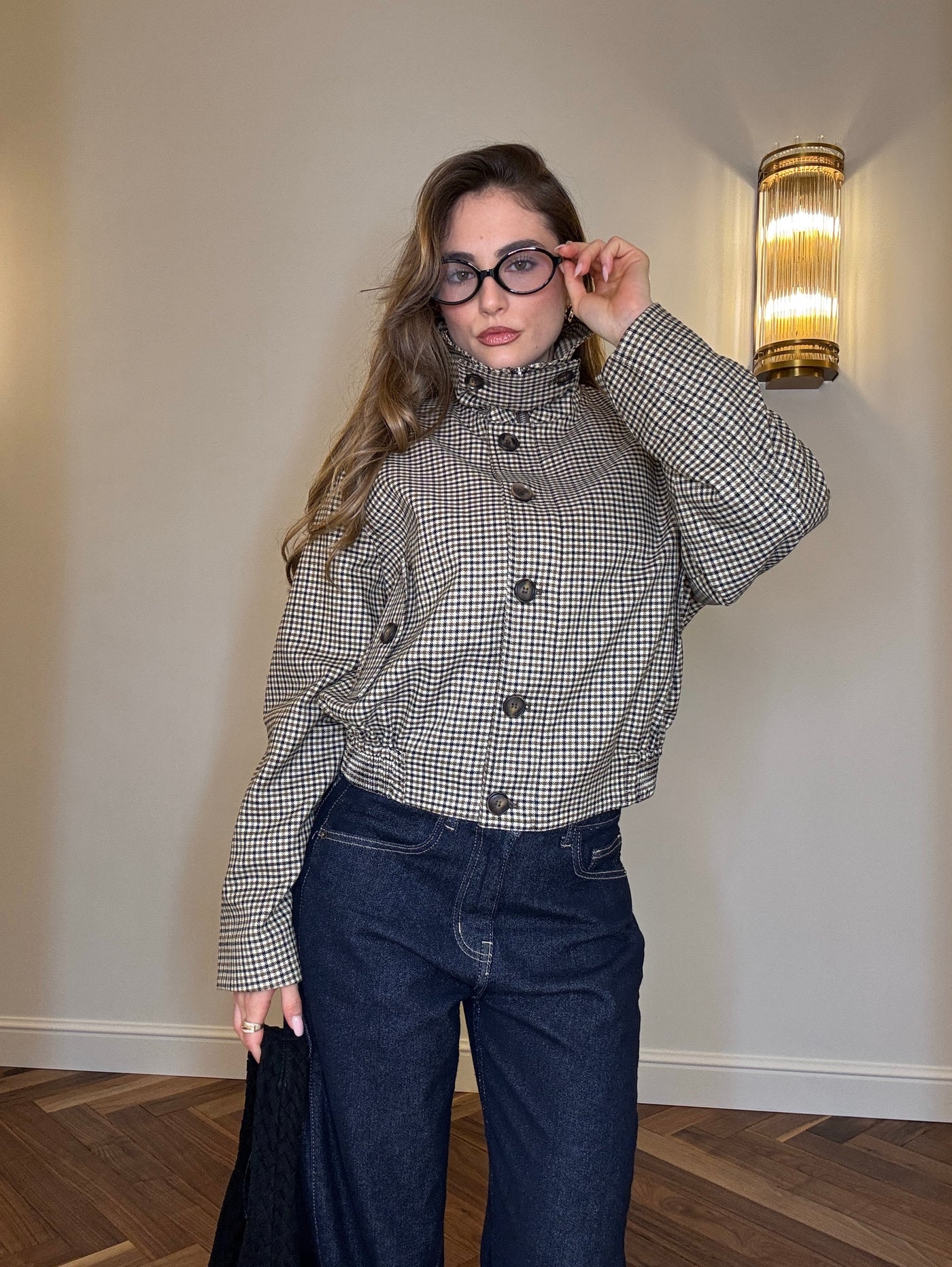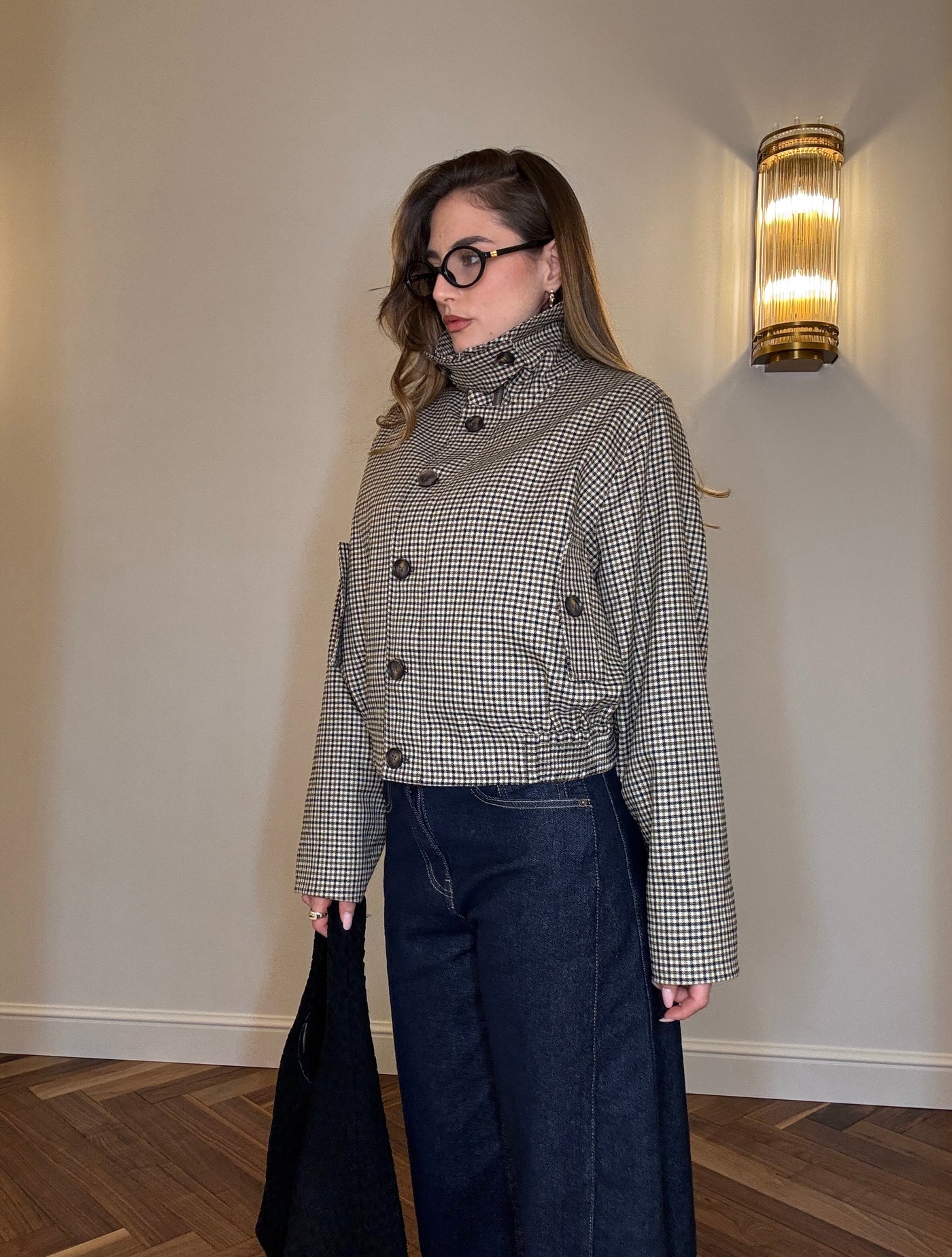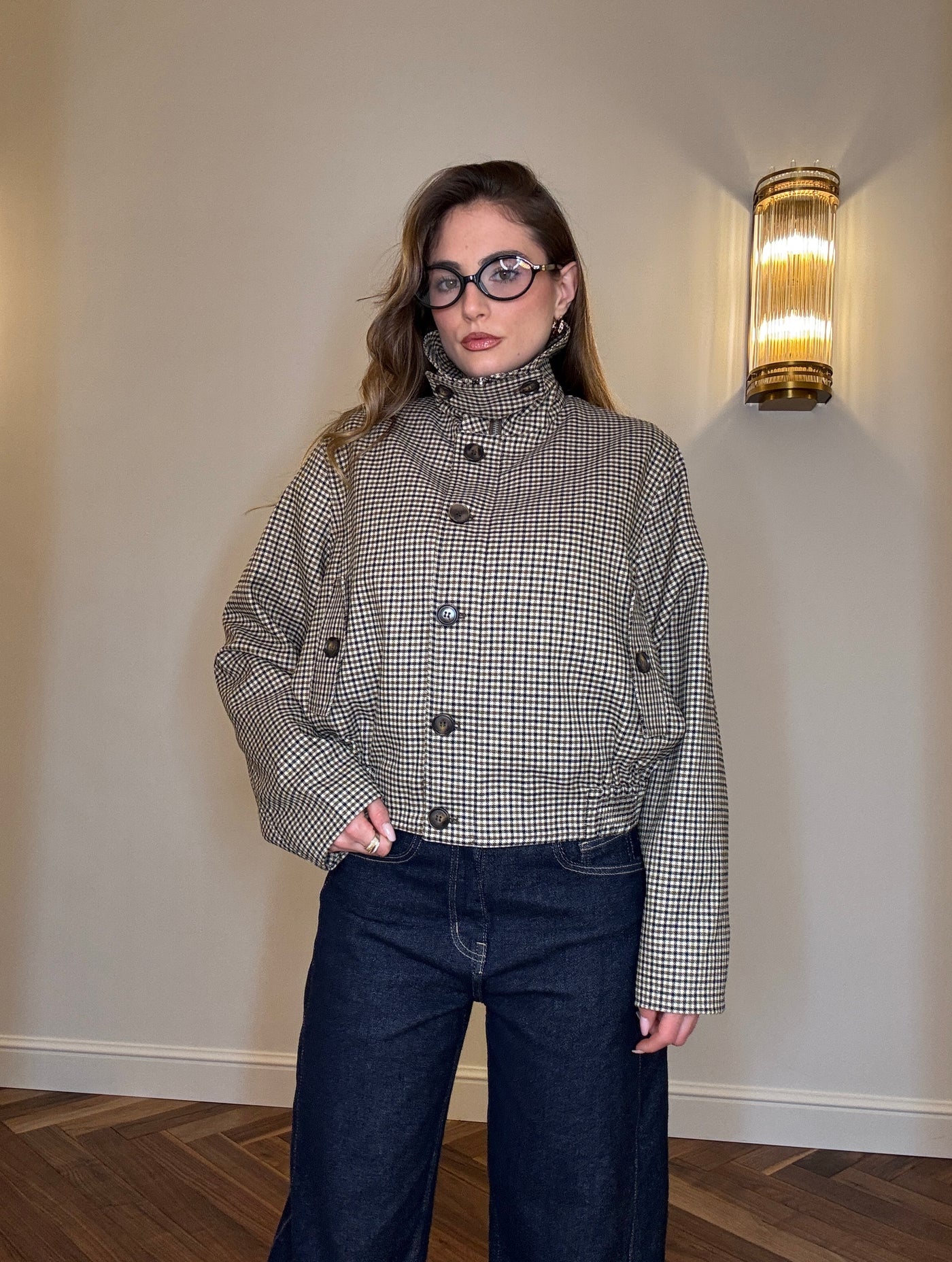 La Giacca Poet Core unisce il fascino dei piccoli quadretti all’eleganza di un taglio corto e femminile. Ispirata alle atmosfere londinesi, è perfetta per creare look raffinati e dal gusto vintage.